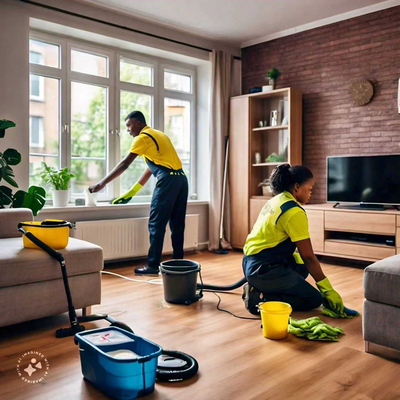 The move-in/move-out cleaning service ensures homes or apartments are meticulously cleaned between tenants, focusing on kitchens, bathrooms, floors, and fixtures.
